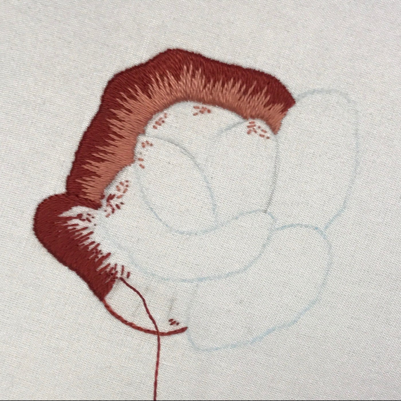 Silk shading had always felt rather daunting, as you need to be random and get the angles right, but today’s class certainly helped to gain more confidence. During the day the randomness was getting easier and I was developing tacticts for getting the angles right. For instance, sometimes it is easier to leave a gap and fill it in later to get the change in angle right. It is also very important to keep paying attention, even though in essence they are just simple straight stitches, as the randomness and angles require a lot of focus.