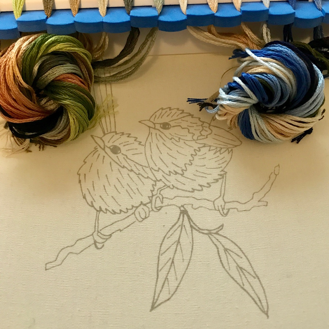 I had seen an embroidery design with a male wren before and I had always thought the design was imagined because I didn’t such a bright blue bird would exist. To my surprise, it featured in some displays in the Melbourne Museum and it was even more exciting to spot the real thing on our travels in Warrnambool, Hall’s Gap and on Kangaroo Island. I really wanted to take a picture of them, but they never sat still enough for my simple camera to get into focus. All that I was left with were a couple of out of focus blue blurs. When I spotted this kit at Create in Stitch I just knew I had to get it as these will sit still!