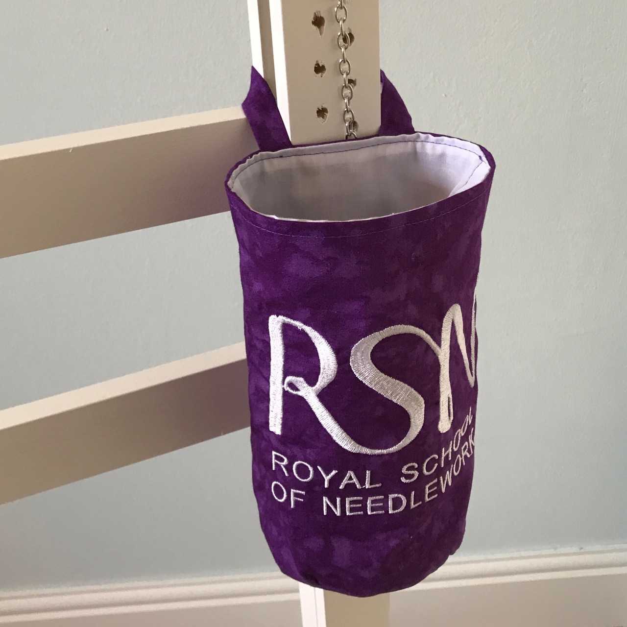 When I did my first day-class at the Royal School of Needlework last year I spotted the cute little purple thread catchers with the RSN logo on sitting on the poles of the trestles in the certificate & diploma classroom. At the time I thought it was a shame that they didn’t sell those in the RSN-shop.