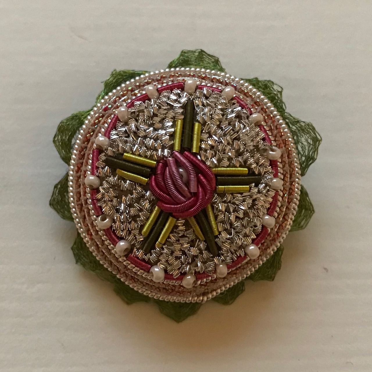 Your brooch is beautiful 🙂 So glad you were able to preserve the lovely domed effect, and the purl pieces might have been fiddly to stitch on but they are so sparkly and pretty!