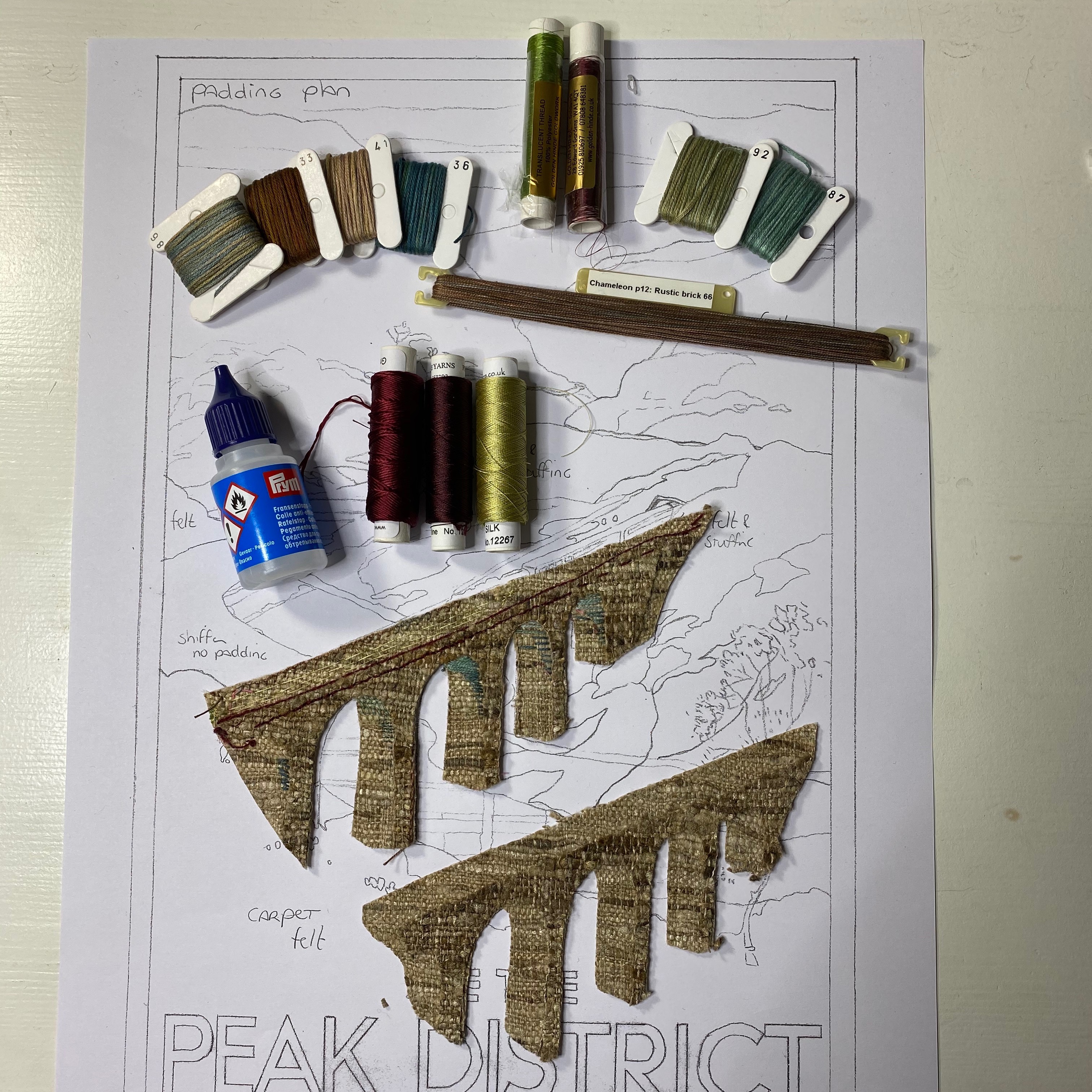 When I picked the design with one of the tutors in October 2019 I had a rough idea what I wanted to do with it. Having a design and idea in mind certainly made shopping for fabrics easy. Shelley from Thistlittlethread and I had a fabulous day out in London exploring the fabric shops of Soho and Brick Lane. I manage to find quite a lot of fabric there and I bought the rest at the Knitting and Stitching show at Alexandra Palace. Having compiled the fabric pack made the design really come together in my head and it was easy to find the threads to match from my stash.